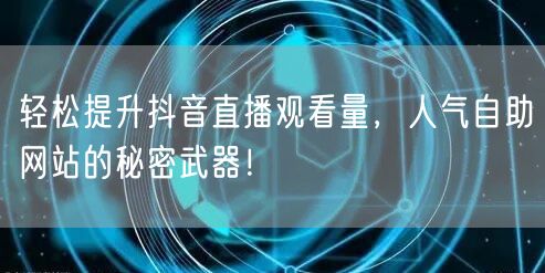 随着互联网的普及和社交媒体的发展,抖音直播已成为大众娱乐、学习交流的重要平台。然而,如何在这个竞争激烈的平台上轻松提升直播观看量,成为许多主播面临的难题。今天,我们将揭秘人气自助网站的秘密武器,助你在抖音直播中脱颖而出!