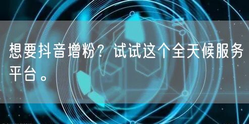 随着抖音的普及,越来越多的人开始关注如何在抖音上增加粉丝。毕竟,粉丝数量是衡量一个账号影响力的重要指标之一。如果你也想在抖音上增加粉丝,那么不妨试试这个全天候服务平台。
